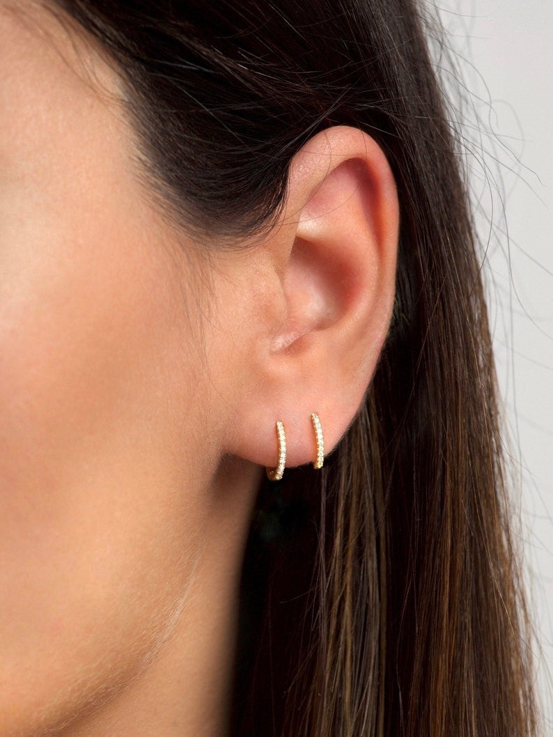 A must-have essential in every jewelry collection - these delicate hoops embedded with tiny cubic zirconia gemstones are the perfect, dainty hoops to mix and match with other earrings and will go with everything